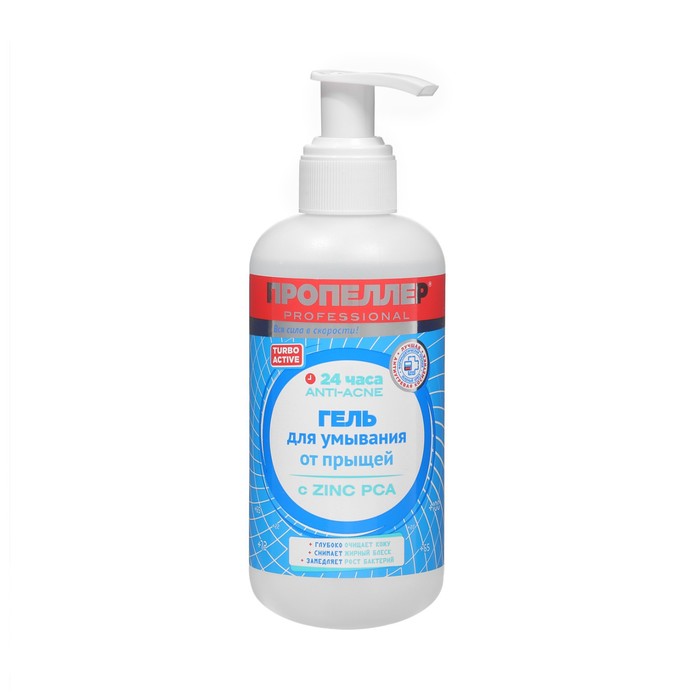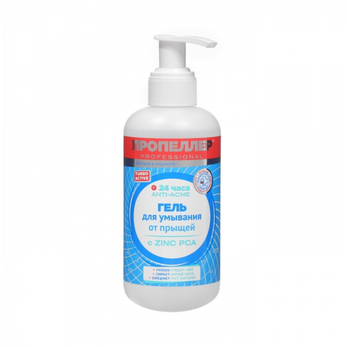 Гель для умывания от прыщей ПРОПЕЛЛЕР Turbo Active с цинцидоном - это эффективное средство для борьбы с прыщами и другими проблемами кожи. Он содержит цинцидон, который помогает уничтожить бактерии, вызывающие прыщи, и предотвращает их появление.