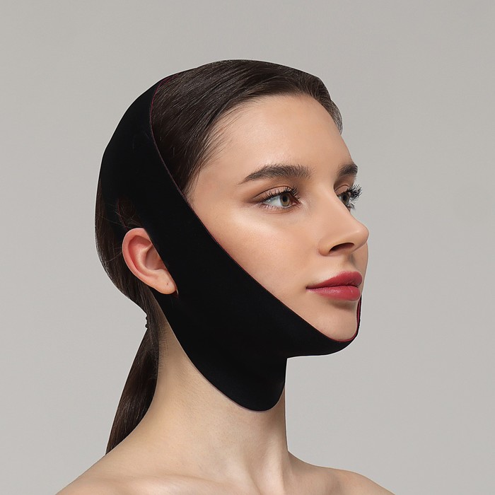 Маска текстильная для коррекции овала лица, на липучке, 62×9.5 см, чёрная, розовая