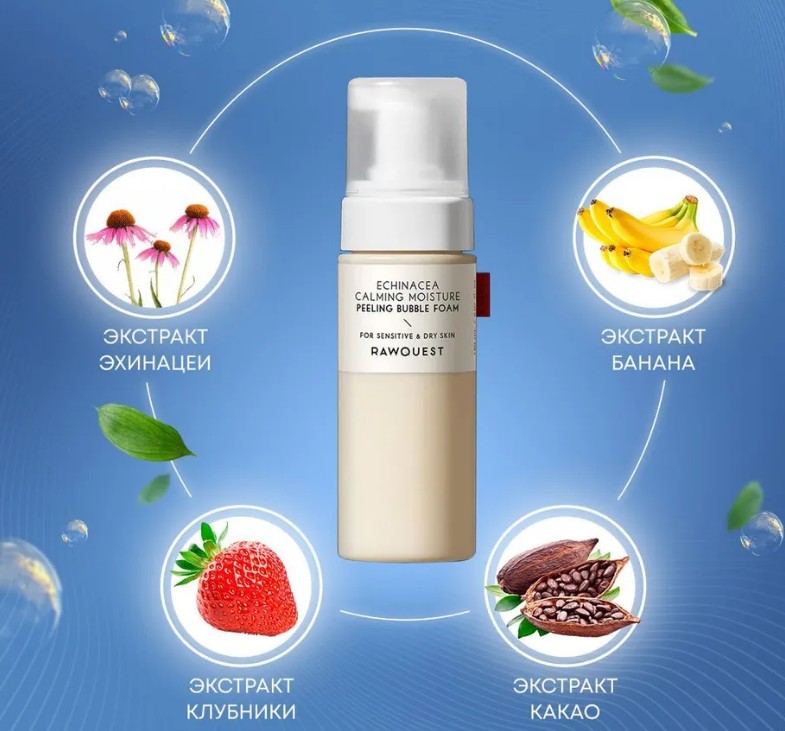 Кислородная пилинг-пенка на основе экстракта эхинацеи дозатором, удобна в использовании в дороге. Она бережно очищает поверхность кожи и поры от загрязнений, остатков макияжа, комедонов. После одной процедуры лицо преображается, приобретая красивое сияние и гладкость.