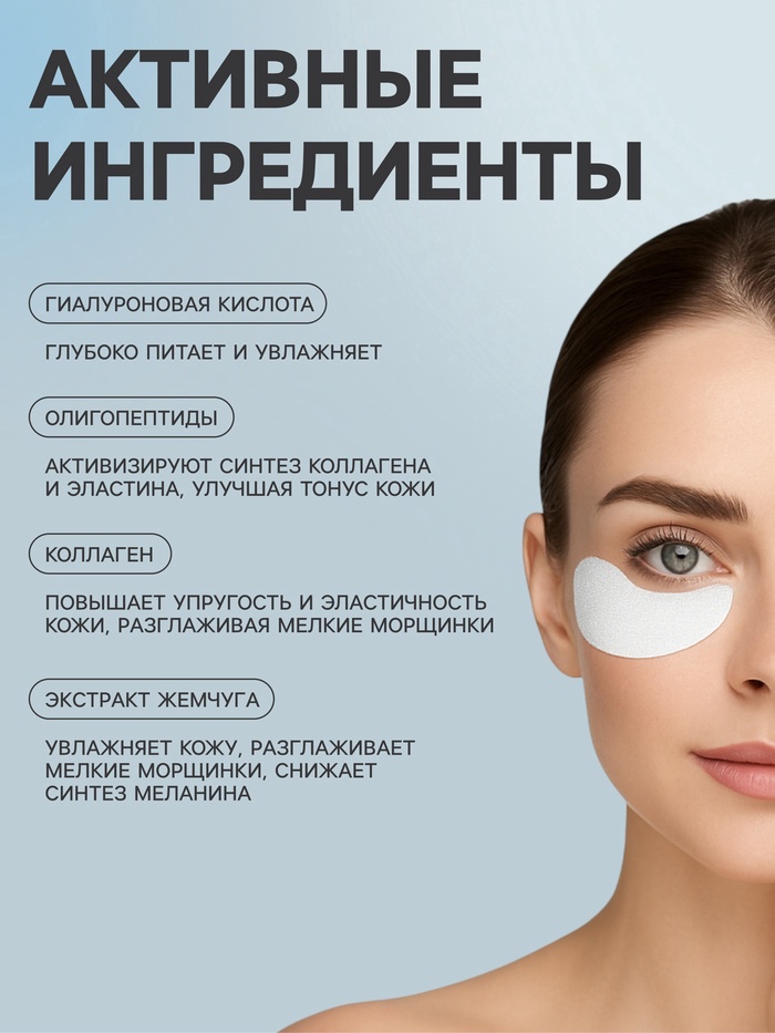 Гидрогелевые патчи на основе жемчуга плотно прилегают к коже, наделяя её полезными веществами, входящими в состав. Они борются с отечность, делают темные круги менее выраженными, напитывают кожу влагой и наполняют её витаминами, а также подтягивают кожу вокруг глаз.