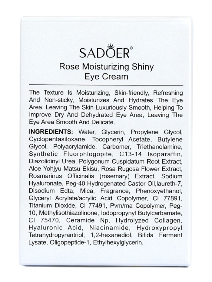 Увлажняющий крем для кожи вокруг глаз SADOER с нежным ароматом розы — это роскошное средство для деликатного ухода за чувствительной кожей вокруг глаз. Формула крема разработана специально для поддержания оптимального уровня увлажнения, мягкости и упругости кожи в самой тонкой и нежной зоне лица.