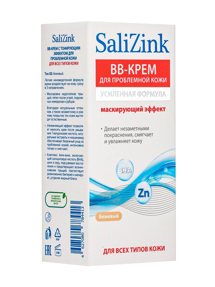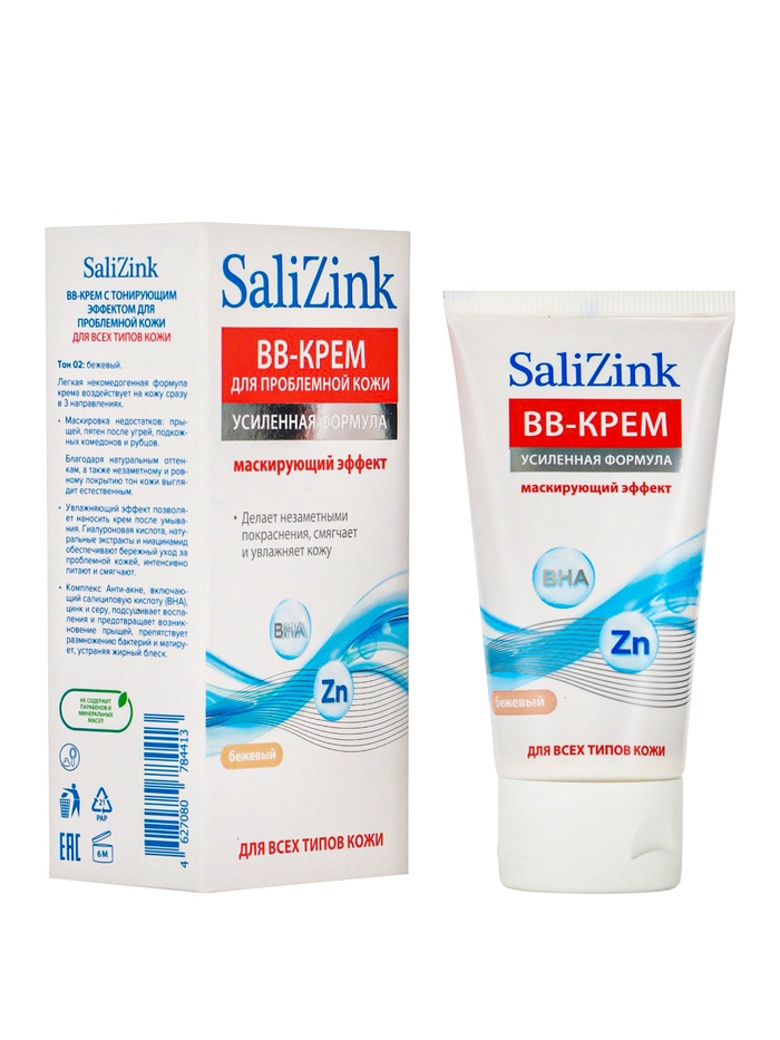 Крем-BB САЛИЦИНК — это многофункциональное средство для ухода за проблемной кожей с лёгким тонирующим эффектом. Формула с салициловой кислотой помогает бороться с несовершенствами: уменьшает воспаления, регулирует работу сальных желез и предотвращает появление новых высыпаний.