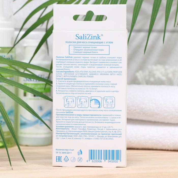 Полоски очищающие для носа Салицинк с активированным углем и экстрактом гамамелиса - это специальные полоски, предназначенные для удаления черных точек и излишков кожного сала с носа. Каждая упаковка содержит 6 полосок.