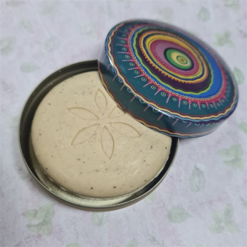 Упаковка: жестяная мыльница многоразового использования с рисунком.