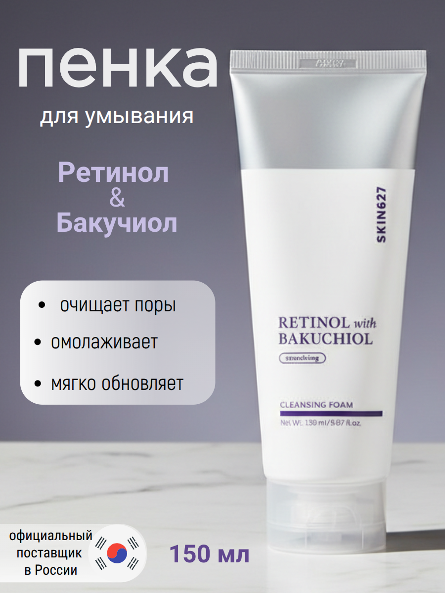 SKIN627 Пенка для умывания с ретинолом и бакучиолом Retinol With Bakuchiol Smoothing Cleansing Foam (150 мл)