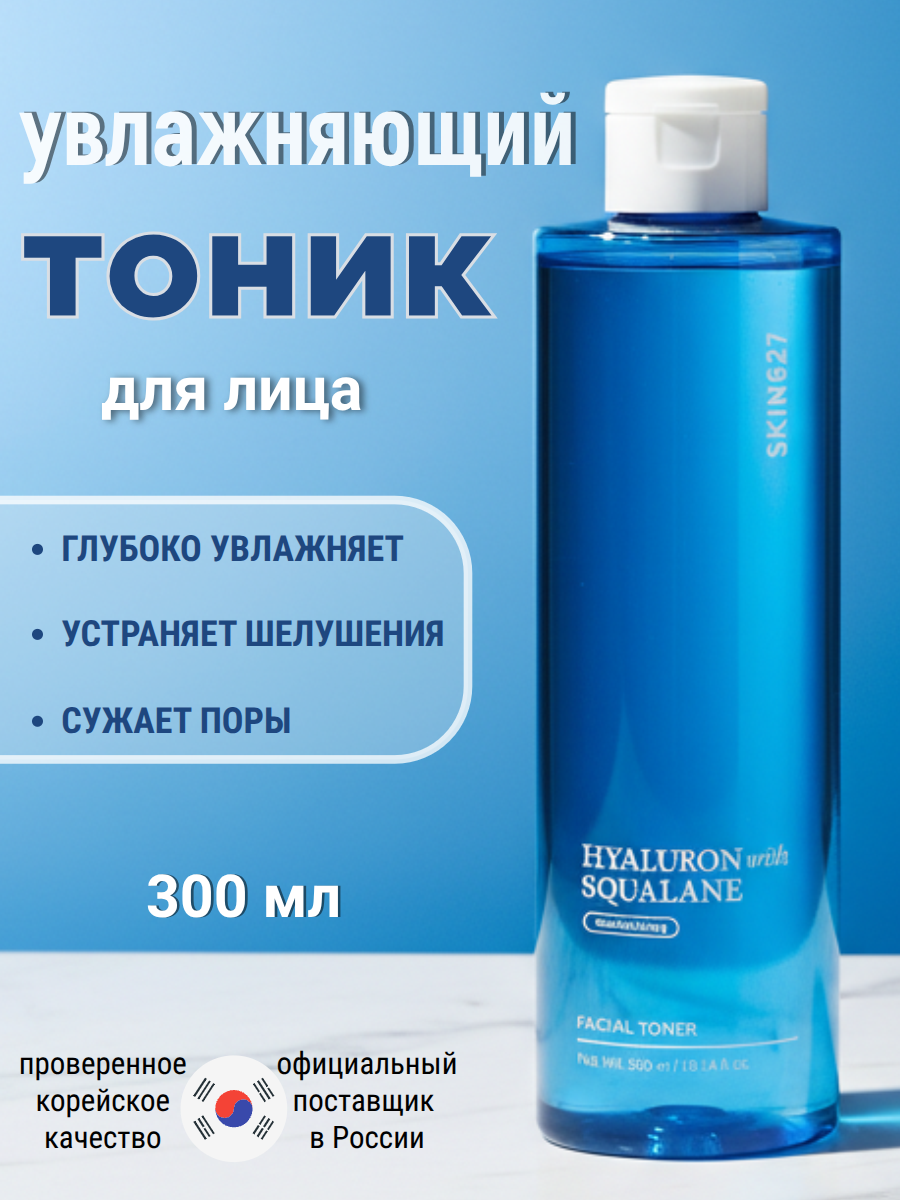 Многофункциональный тонер для лица, сочетающий увлажняющие свойства гиалуроновой кислоты и восстанавливающий эффект растительного сквалана.