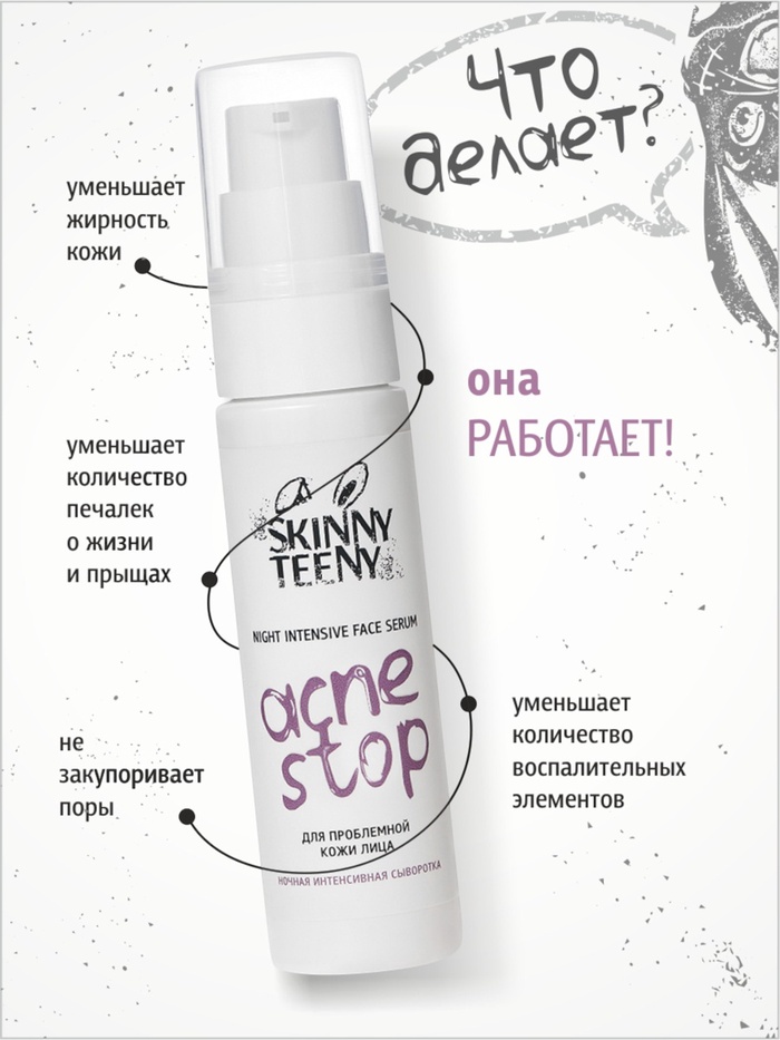 В ночную битву за красоту твоей кожи вступает сильнейшая группа: Салициловая кислота и производные Азелаиновой кислоты, Серы и Цинка. Они способны держать надежную оборону против несовершенств и их последствий, регулируя выработку себума и избавляя кожу от уже старых ороговевших клеток. Клан экстрактов клевера, кипрея и таволги поддержит матовый финиш кожи и визуально уменьшит выраженность пор и «пожар» на коже.