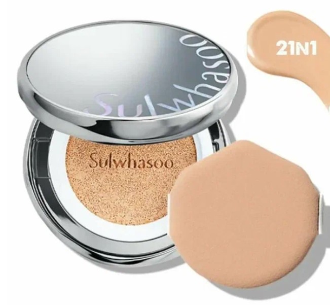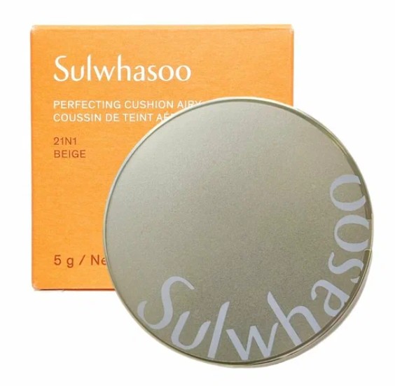 Миниатюра Sulwhasoo Perfecting Cushion Airy 5g Совершенствующий кушон - легкость, безупречность, здоровое сияние одновременно. Макияж, который придает коже нежное увлажненное сияние и естественный здоровый цвет лица. Легкое, невесомое покрытие, обеспеченное ключевым ингредиентом активирующей сывороткой первого ухода* *Содержит активатор JAUM™, ключевой компонент 5-го поколения легендарной сыворотки-активатора First Care от Sulwhasoo. Ухаживающая за кожей косметика Sulwhasoo, обеспечивающая комфорт в течение всего дня и дышащий вид. Представлен в оттенке 21 N1 бежевый Функциональная косметика: отбеливающая, разглаживающая морщины, блокирующая УФ-излучение. Воздушное покрытие, стойкий эффект, адгезия, увлажненное сияние на финише. Кушон выравнивает тон кожи, обладает антивозрастным действием и защищает кожу от УФ-излучения. Солнцезащитный фактор SPF50+/PA+++ Источник: https://korealux.ru/sulwhasoo-kupit/miniatyura-sulwhasoo-perfecting-cushion-airy-5g © KoreaLux.ru