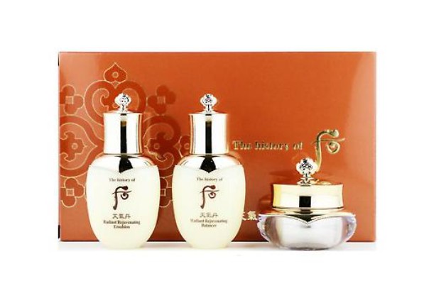 2. Лосьон увлажняющий регенерирующий The History Of Whoo Cheongidan Radiant Rejuvenating Emulsion 25ml - лосьон обладает антисептическим свойством, увлажняет, способствует восстановлению жизненной энергии. Наносить после эссенции. 2-3 капли лосьона нанести на ладони, равномерно распределить легкими движениями от центра к внешним границам.