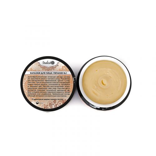 Бальзам Indica для лица «Питание №1» - мультифункциональная питающая anti-age система 2в1 (массажное масло и экспресс-уход). Бальзам разработан для чувствительной, обезвоженной, зрелой и уставшей кожи. В течение процедуры кожа восстанавливает свои энергетические ресурсы, успокаивается, приобретает здоровый цвет; восстанавливается микроциркуляция, моделируется овал лица. Это улучшенная формула бальзама «Восстановление и увлажнение», усиленная маслом макадамии с повышенным содержанием лецитина. Комплекс фитоэкстрактов оказывает мощнейший дренажный эффект, устраняя излишки подкожной жидкости, питает глубинные слои эпидермиса. Премиальный состав. Бальзам обогащён витаминно-минеральным комплексом. Состав: Цветочный мёд . Масла макадамии (австралийского ореха), виноградной косточки , миндальное масло, Ши . Косметическая основа « Липодерм био ». Верблюжье молоко. Коллоидное серебро . СО2 экстракты: крапивы двудомной, подорожника, хвоща. Отвар корня девясила, сабельника и розы. Эфирные масла: янтаря , пачули , розмарина , тимьяна. Витаминные комплексы групп В, Е. Применение: Нанести на лицо, шею, зону декольте, провести сеанс массажа, добавить немного бальзама, оставить на 10-15 минут как питательную маску. По завершении, снять остатки бальзама бумажным полотенцем, либо смыть. В домашних условиях применяется, как ночной питательный крем. Стоит отметить, что пользоваться бальзамом для лица Indica «Питание №1» очень удобно – он легко смывается тёплой водой, не оставляя на коже масляной плёнки.