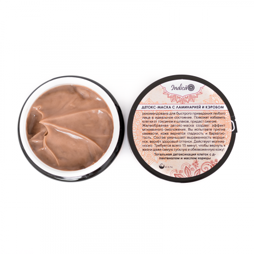 Именно поэтому, сегодня самыми востребованными средствами становятся детокс-маски на натуральной основе. Детокс-маска Indica с ламинарией и антиоксидантами кэроба рекомендуются для быстрого приведения Вашего лица в идеальное состояние. Процедура поможет избавить клетки от токсинов и шлаков, придаст сияние.