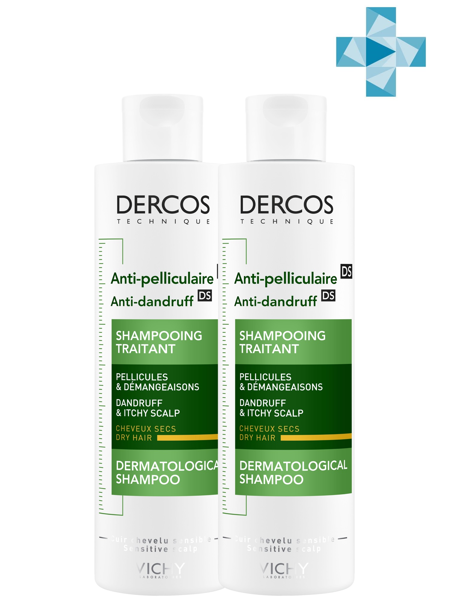 VICHY Интенсивный шампунь-уход против перхоти для сухих волос, 200 мл х 2 шт