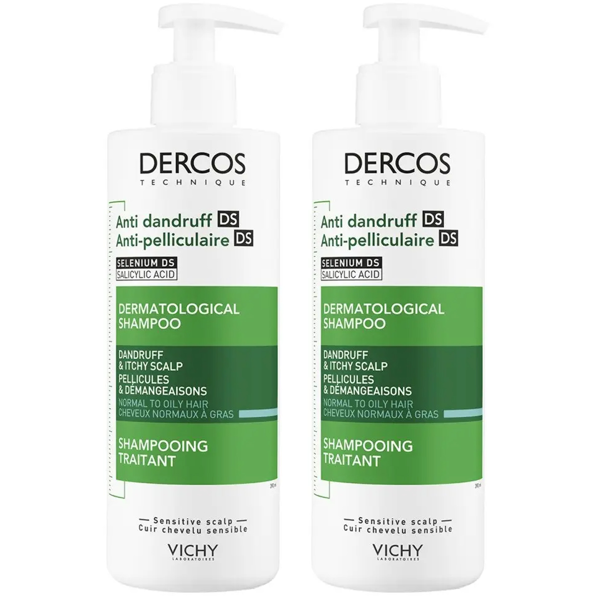VICHY Интенсивный шампунь-уход против перхоти для жирной кожи головы, 390 мл х 2 шт