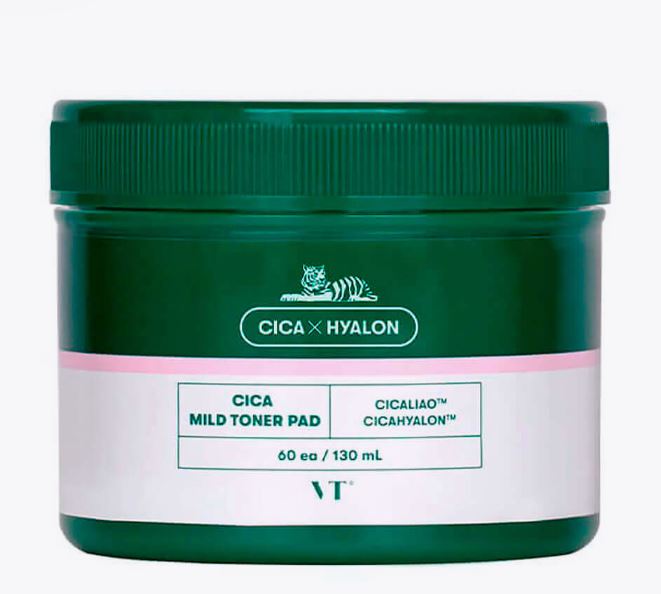VT COSMETICS CICA MILD TONER PAD Успокаивающие пэды с центеллой, 60 шт