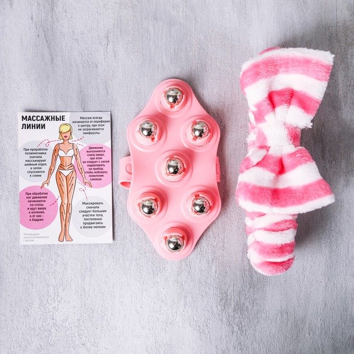 Набор с массажёром для тела поможет держать ваше тело в тонусе. В массажёр встроены металлические шарики, которые свободно двигаются.