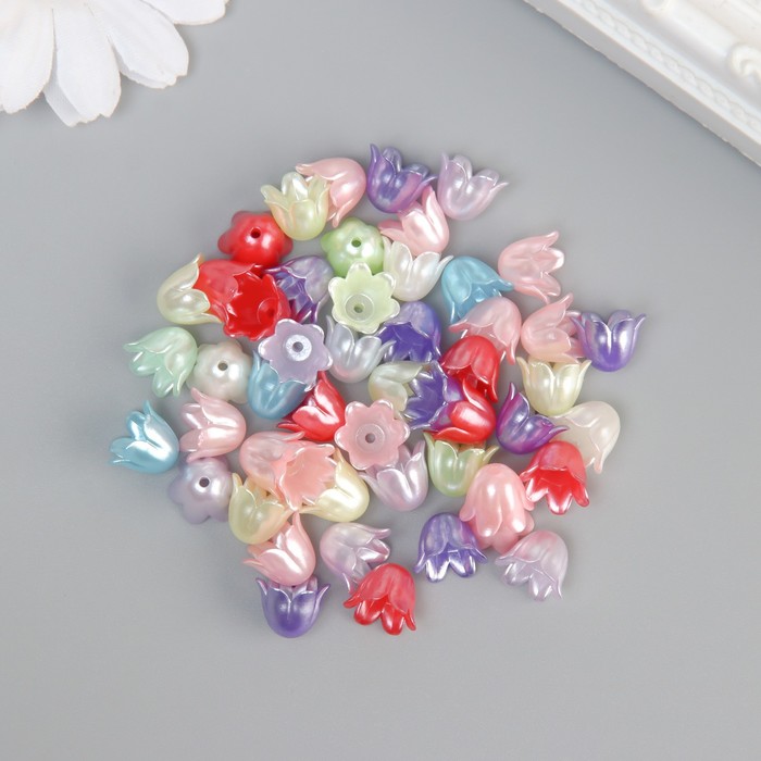 Бусины для творчества пластик "Тюльпанчики" цветной перламутр набор 50 шт 1,1х1,1х0,9 см