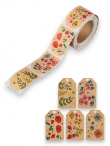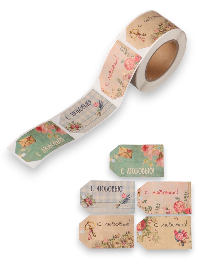 Наклейка бумага крафт «Бирки. Цветы. Винтаж», 3×5 см 200 шт., в рулоне