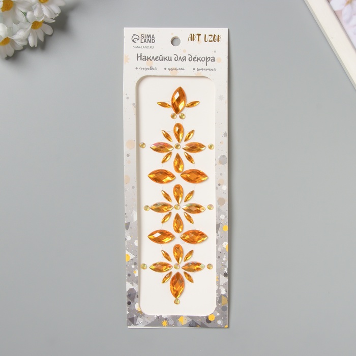 Наклейка - стразы «Цветы», на шею, спину, жёлтая, 25×8.5 см