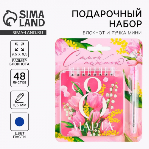 Подарочный набор, блокнот 48 листов + ручка «Самой нежной. 8 марта»