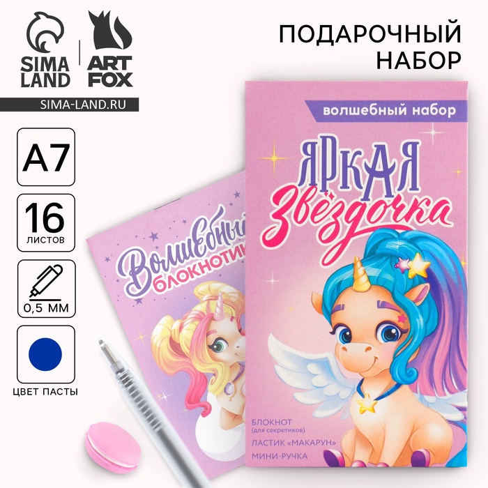 Подарочный набор, блокнот, ручка и ластик «Единорог»