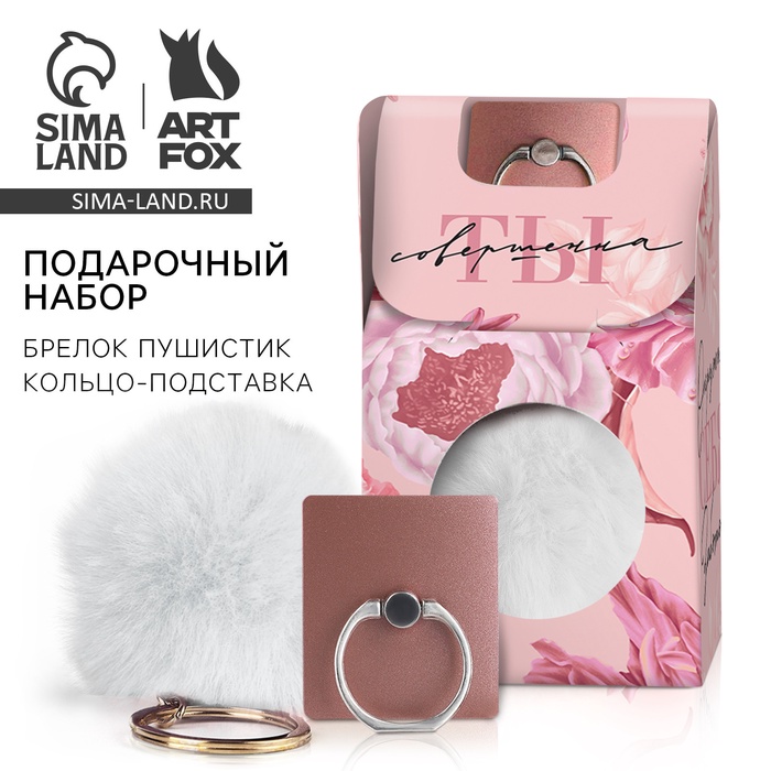 Подарочный набор, подставка для телефона-кольцо и брелок «Ты совершенна»