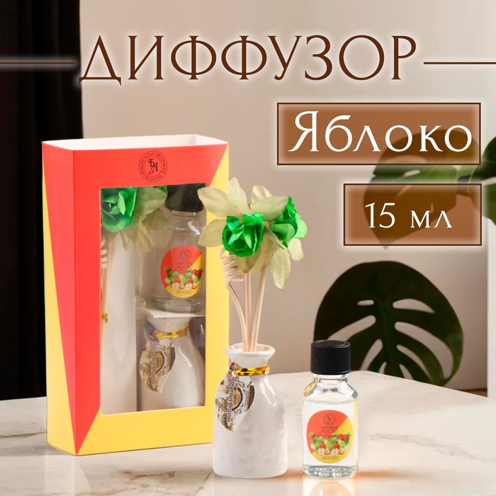 Набор подарочный с диффузором «Ваза с цветком», аромат яблоко, «Богатство Аромата»
