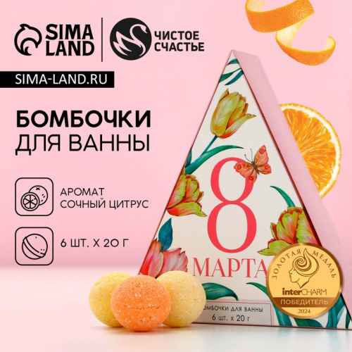 Бомбочки для ванны «С 8 Марта!», 6×20 г, Чистое счастье