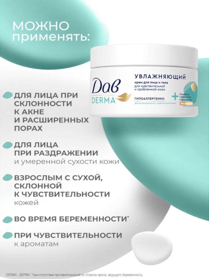 Увлажняющий крем для тела и лица Дав Derma — это универсальное средство для ухода за сухой, чувствительной и проблемной кожей.