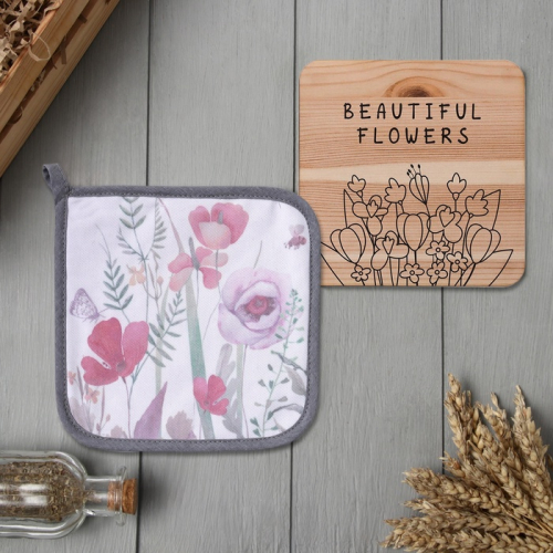 Набор кухонных прихваток с нежным цветочным принтом — это практичный подарок для дома и душевный знак внимания. Он создаёт на кухне атмосферу уюта и весеннего настроения, а прочные материалы берегут руки от жара.