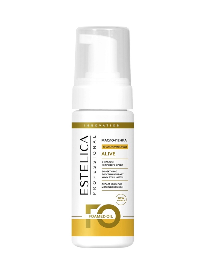 ESTELICA PROFESSIONAL ALIVE, масло-пенка для рук и ногтей 150 мл (пенный дозатор) — питательное и восстанавливающее средство с маслом кедрового ореха, которое очищает, защищает и насыщает кожу необходимыми веществами. Уникальная формула масло-пенки способствует нормализации клеточных процессов и кровообращения в коже, замедляет процессы старения, обладает омолаживающим эффектом и восстанавливает структуру кожи. Средство обогащает кожу витаминами и микроэлементами, поддерживая её здоровье и упругость.