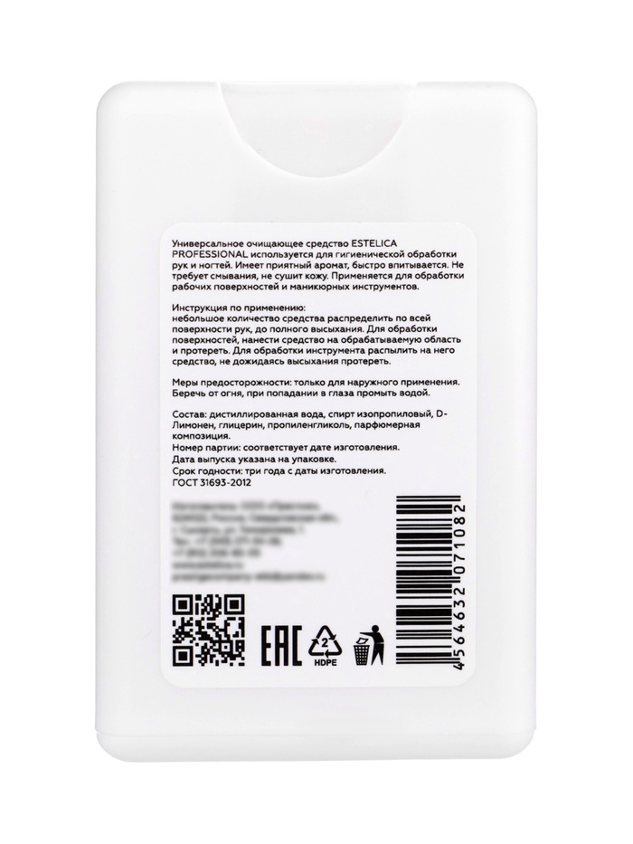 ESTELICA PROFESSIONAL, универсальное очищающее средство 20 мл — Персиковый сок — эффективное средство для гигиенической обработки рук и ногтей, а также рабочих поверхностей и маникюрных инструментов. Обладает приятным ароматом персика, быстро впитывается, не требует смывания и не сушит кожу.