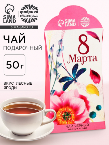 Чай подарочный черный «С 8 Марта», вкус: тропический, 50 г