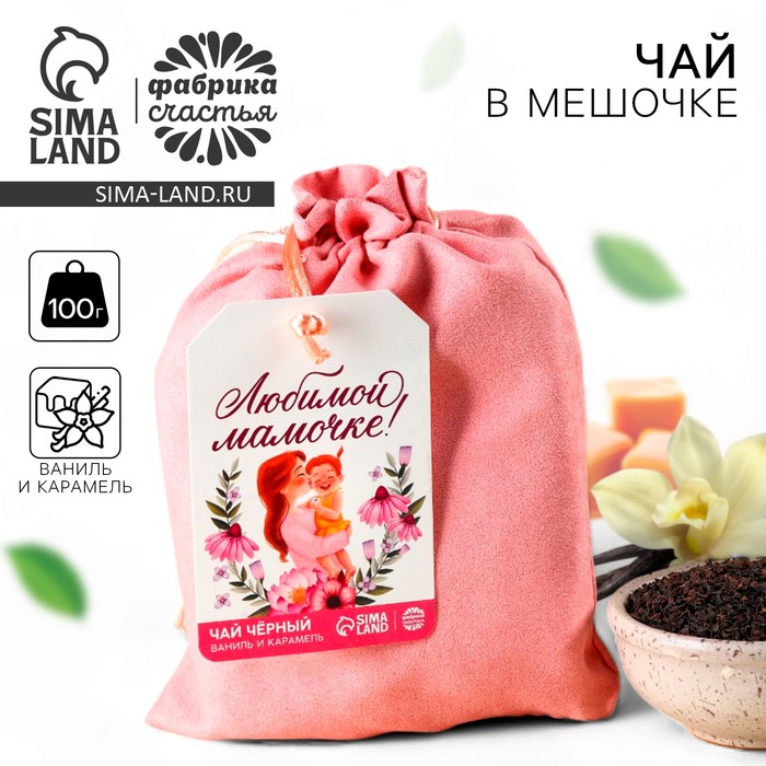 Чай подарочный «Любимой мамочке» в подарочном мешочке, вкус: ваниль и карамель, 100 г