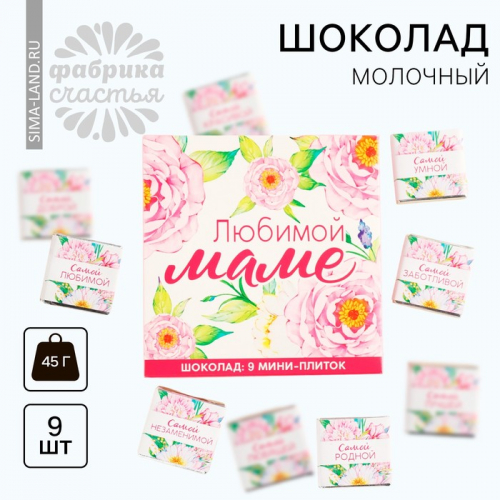 Шоколад мини молочный «Любимой сестре», 45 г (9 шт. × 5 г).