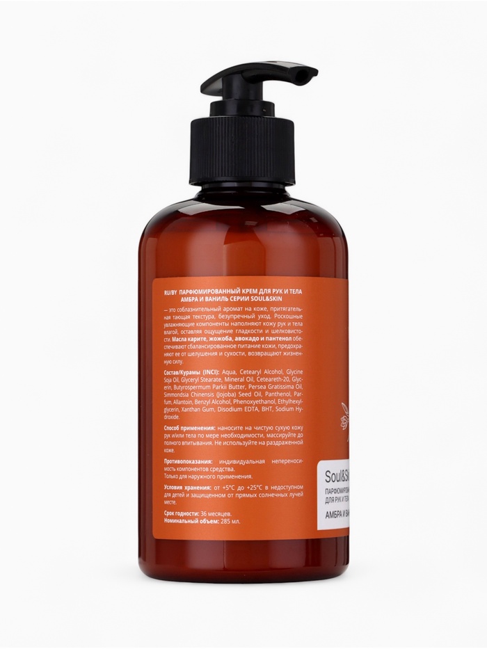 Роскошный крем с тёплым ароматом амбры и ванили, обеспечивающий интенсивное увлажнение и питание кожи рук и тела.