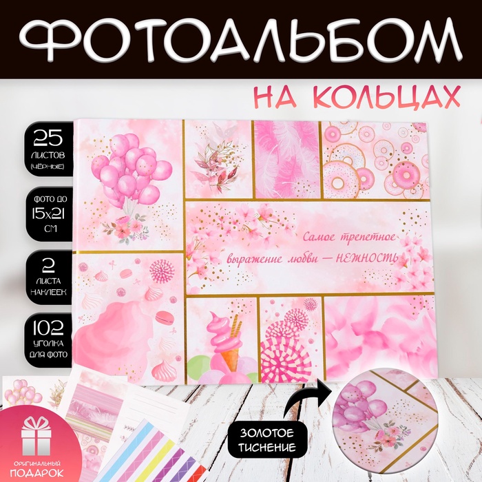Фотоальбом на кольцах 25 листов Keep memories «Сладости. Нежность», с наклейками, тиснение золото, 19×27×3 см