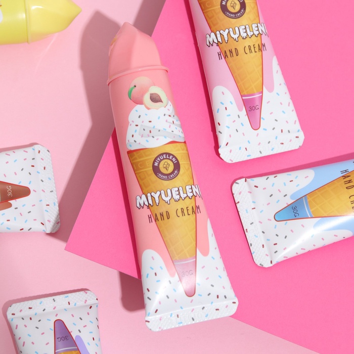 Лёгкий увлажняющий крем с ароматом наивкуснейшего мороженого. Яркий и оригинальный тюбик крема в виде мороженого вызывает восторг у любого, кому попадает в рукию, по мимо этого, он имеет специальный необычный наконечник, который позволяет контролировать количество крема при нанесении на руки. Крем замечательно питает, увлажняет, смягчает, оживляет и тонизирует кожу рук, делая ее еще более нежной, гладкой и сияющей. Крем быстро впитывается, обладает разглаживающими свойствами. Каждый крем имеет свой неповторимый аромат. После применения кожа становится невероятно мягкой, бархатистой, при этом без липкого или жирного эффекта. Подходит для ежедневного ухода за руками.