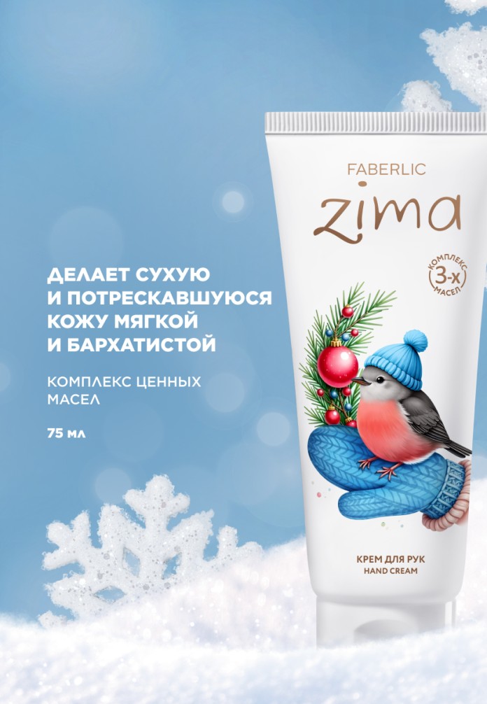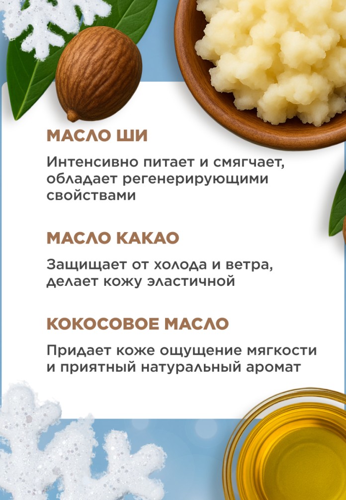 Крем для рук создан специально для интенсивного ухода в период холодов. Защищает кожу рук в зимних условиях, при воздействии мороза, ветра и резких перепадов температур. Делает кожу мягкой и бархатистой, устраняет шелушение и дарит ощущение комфорта.