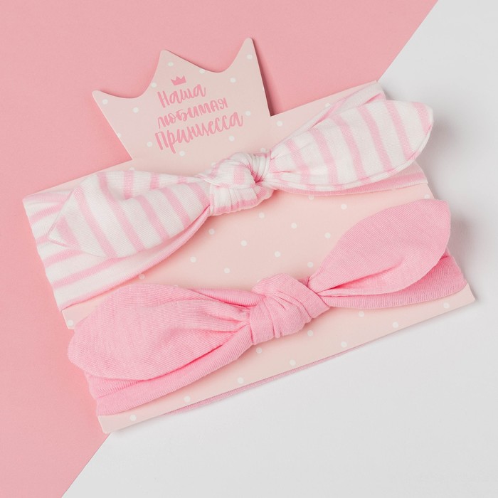 Повязки на голову для девочки «Крошка Я. Полоска», 2 шт., размер 46-48, розовая, белая