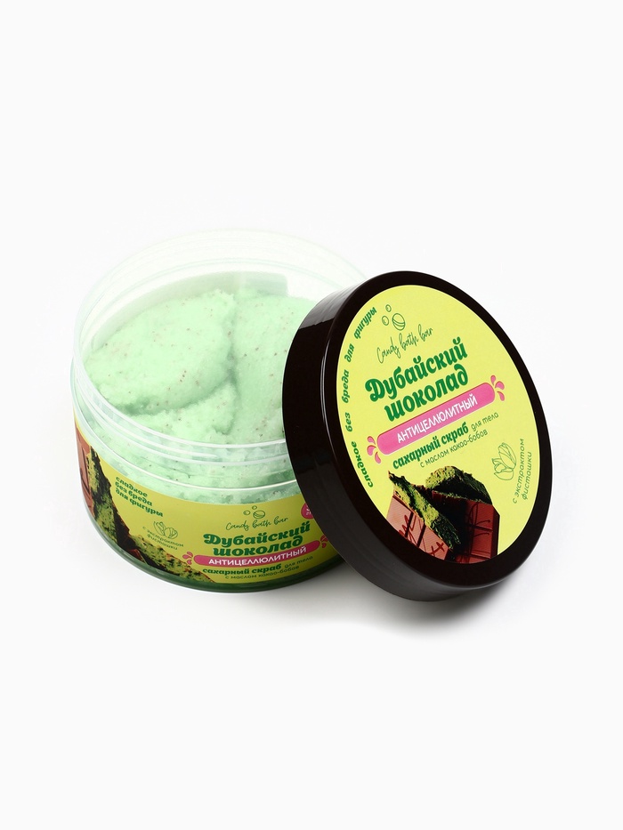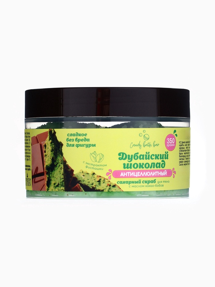 Скраб Candy Baht Bar с солью и сахаром и ароматом дубайского шоколада — это идеальное сочетание интенсивного очищения и нежного ухода за кожей. Натуральные кристаллы соли мягко отшелушивают омертвевшие клетки, а сахар придаёт коже дополнительное смягчение и бархатистость. Питательные масла глубоко увлажняют и питают кожу, делая её гладкой и шелковистой.