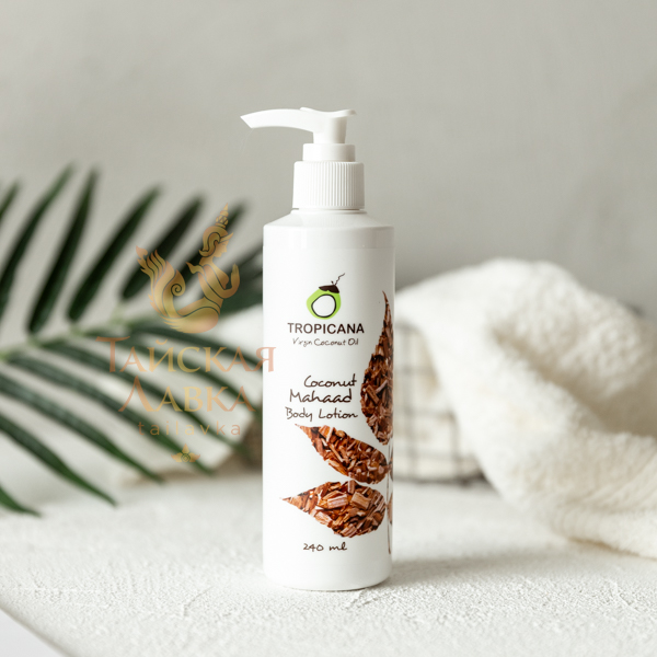 Легкий и нежный лосьон на основе кокосового масла и экстракта хлебного дерева (махаад) подарит вам бережную заботу о коже тела и наслаждение волшебным тропическим ароматом. Лосьон обладает выраженным питательным и увлажняющим свойством – отлично устраняет сухость, смягчает и питает кожу, делает ее упругой и гладкой, как шелк. Состав, обогащенный ценными природными ингредиентами, ускоряет обновление клеток, тормозит процесс увядания, эффективно избавляет от нежелательной пигментации, выравнивает цвет кожи, успокаивает и снимает раздражения, борется с бактериями, вызывающими воспаления, прыщи и угревую сыпь, нормализует деятельность сальных желез.