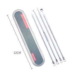 Четыре инструмента разных видов, для удаления угрей имеют различные характеристики и формы, включающие треугольные и круглые петли, угловые петли, заостренную иглу, ложку Уно и не скользкое покрытие.