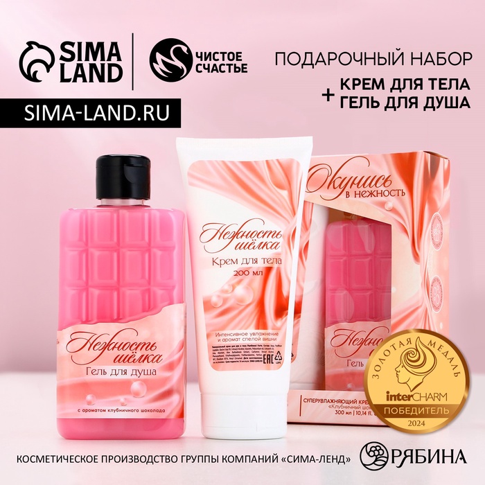 Подарочный набор косметики «Окунись в нежность!», гель для душа 300 мл и крем для тела 200 мл, Чистое счастье