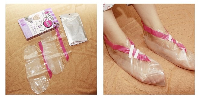 1.Срежьте верхнюю часть пакета, достаньте носочки. Будьте осторожны – не разлейте жидкость, которая находится внутри носочков2.Наденьте на стопы носочки, закрепите на ноге с помощью стикеров для фиксации и оставьте на один час3.По истечении часа снимите носочки и помойте ноги в теплой воде4.В течение 5-7 дней произойдет отшелушивание верхних плотных слоев кожи5.Способ и время отшелушивания кожи могут меняться в зависимости от личных особенностей человека