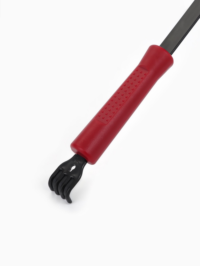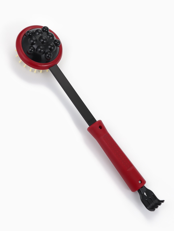 Двусторонний инструмент состоит из чесалки и массажёра-колотушки.