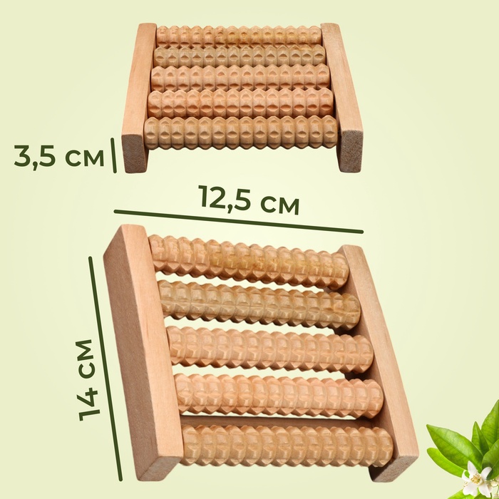 Массажёр для ног «Ножное счастье», 12.5×14×3.5 см, 5 рядов, деревянный