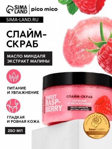 Скраб-слайм для тела Sweet raspberry, питание и увлажнение, с ароматом малины, 250 г, PICO MICO