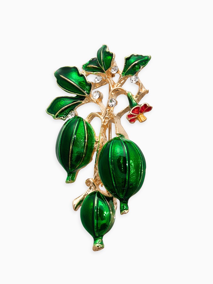Представляем вашему вниманию уникальную брошь, вдохновленную свежей зеленью крыжовника и теплом солнечных лучей. Выразительно зеленоватая и украшенная мелкими стразами, брошь воссоздает красоту летних фруктов, несущих прохладу и свежесть.