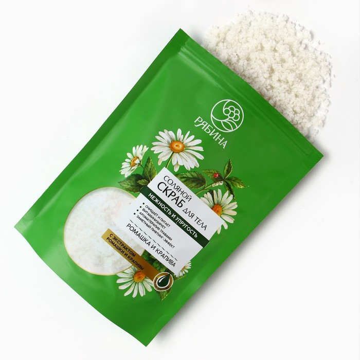 Скраб для тела соляной, 250 г, с экстрактом ромашки и крапивы, РЯБИНА