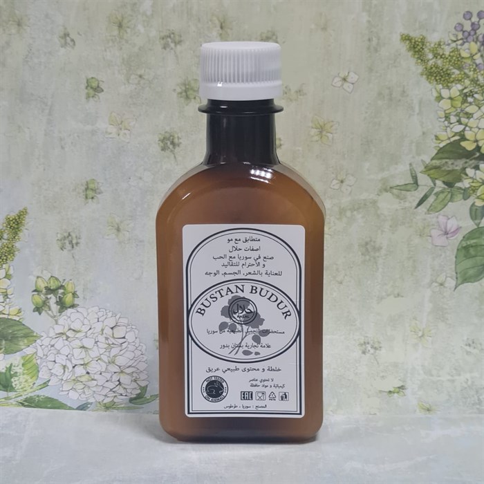Состав: оливковая эмульсия и эмульсия из масла лавра благородного, масло цветов камелии, масло жасмина крупноцветкового, масло семян камелии (Camellia sinensis), масло семян моркови (Daucus carota ), косточек шореи (Shorea robusta), семян бораго (Borago officinalis), семян опунции (Opuntia tuna), гидролат семян крамбе (Crambe abyssinica), масло корневищ имбиря (Zingiber Mill),масла: семян купуасу (Theobromagrandiflorum), масло томата (семян), масло орхидеи (семян), масло пшеницы (зародышей), гидролат плода огурца, масло природной смолы мирры йеменской, масло ши (карите), гидролат цветов жасмина, порошок из природной смолы копала белого.